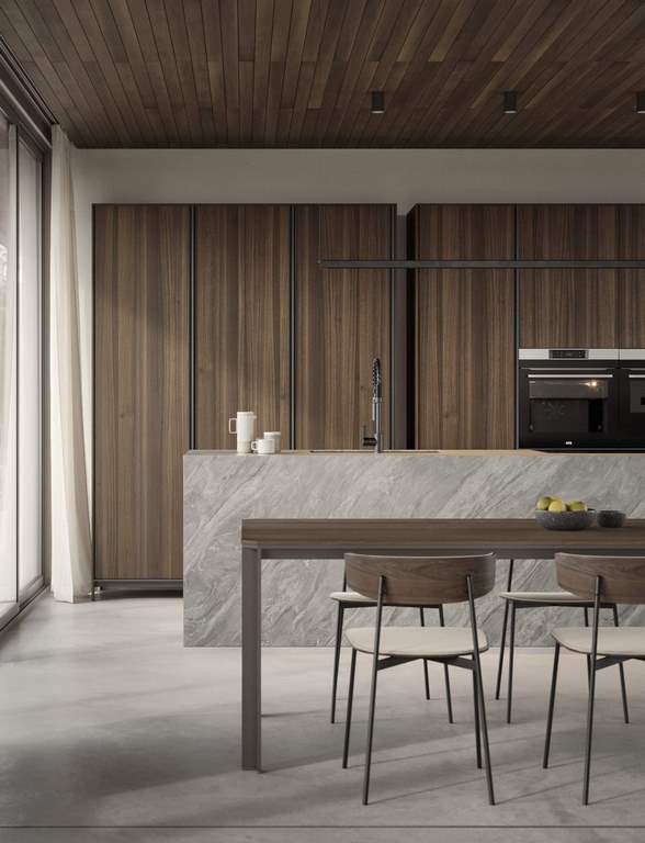 Las cocinas pueden ser elaboradas con una variedad muy amplia de maderas y sus derivados como por ejemplo, el contraenchapado, el aglomerado, el laminado, el polilaminado, y la madera maciza como el nogal, el roble, el cerezo, el castaño, la caoba, la teka, el pino entre otros.